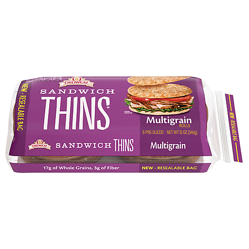 Oroweat Multigrain Sandwich Thins Rolls are crafted with pride and baked with premium ingredients like olive oil and sea salt, so each bite is now more satisfying and delicious than ever. Free from artificial colors, flavors or high fructose corn syrup, these pre-sliced sandwich rounds deliver nutrition in every bite. The better choice for when you want something delicious without the heaviness of sandwich bread, these nutritious whole wheat rolls are perfectly sized for your favorite sandwich creations. Whether you're making a bacon, egg and cheese breakfast sandwich or a peanut butter and jelly for a quick snack, each sandwich thin is made with great taste and ingredients you love. Oroweat Sandwich Thins Rolls are ready right out of the bag for your avocado and tomato sandwich, avocado toast or deli sandwiches. Oroweat Multigrain Sandwich Thins Rolls have everything you love and nothing you don't. Oroweat Multigrain Sandwich Thins Rolls offer delicious nutrition for your balanced life from an expert name in bread.
